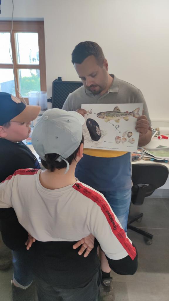 Perlorodky dokáží v českých vodách přežívat díky pstruhům obecným, kterým se ve stádiu larev přichytávají na žábry. V Huschermühle tak děti mohly vidět nejen samotné perlorodky, ale právě také pstruhy i další druhy ryb.