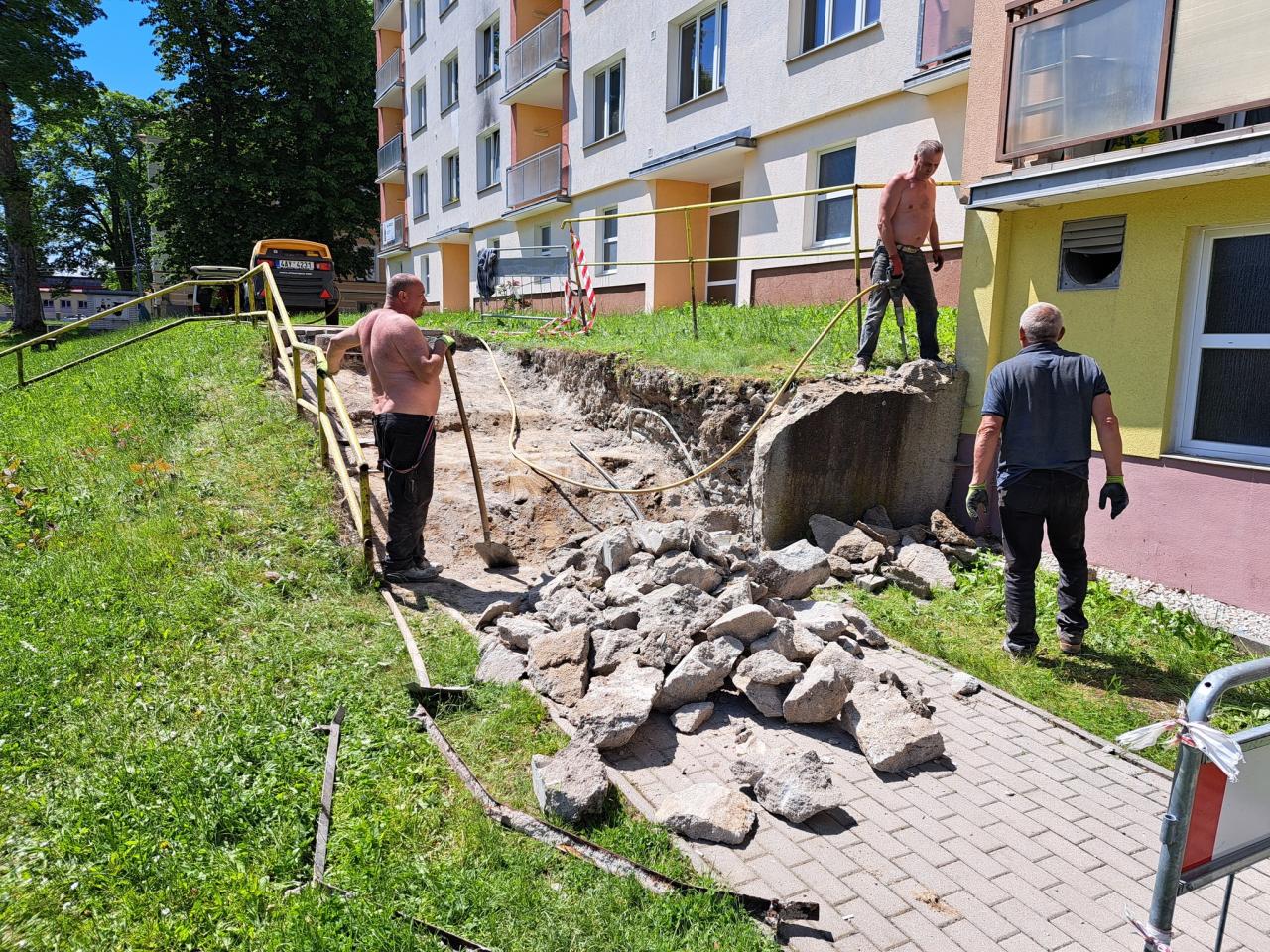 Čekali jsme jednak jak dopadne parkoviště ve Studánce kvůli financím a také na uvolnění kapacit stavbařů. Ti teď měli volné okénko a tak začali s první etapou (jdeme od prostředka ke kraji).