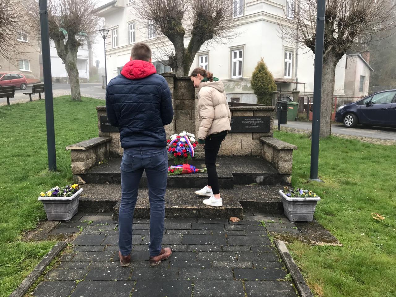 Připomněli jsme si překročení státní hranice americkou armádou, ke kterému došlo v blízkosti našeho města v roce 1945. Uctili jsme památku vojáků, kteří se zasloužili o osvobození našeho města. Žákyně deváté třídy si vzaly na starost proslov, básničku a položení květiny. Proslovu se ujala Klára Burianová, básničku složila Natálie Polťáková, zarecitovala ji Jana Nová a květinu položila Tereza Svobodová. Po položení květin jsme drželi minutu ticha a na závěr jsme zazpívali českou státní hymnu.