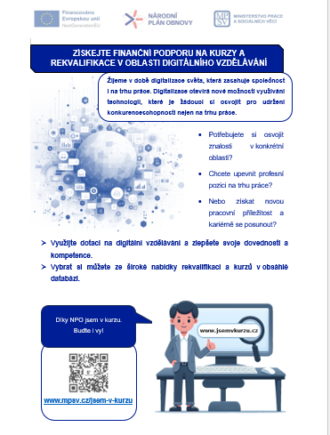 Nabídka vzdělávacích kurzů na podporu zlepšení digitálních dovedností a kompetencí. Vše lze zařídit online – tudíž bez návštěvy úřadu.