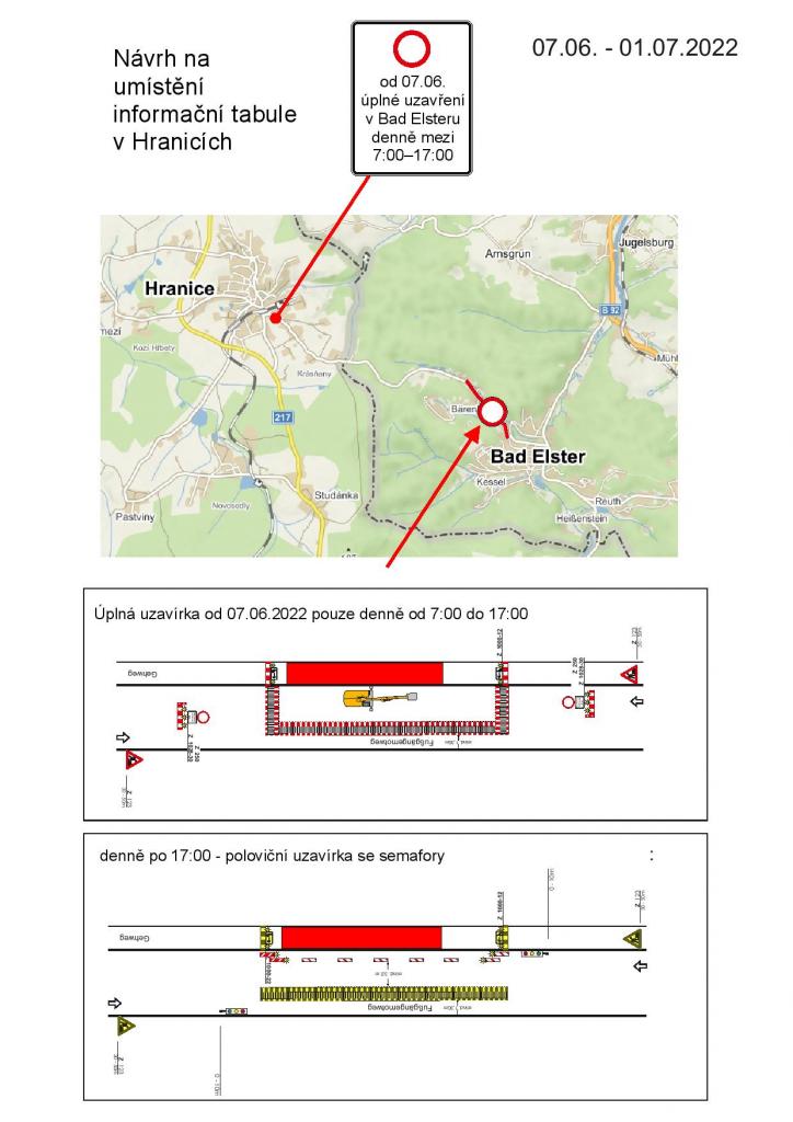 Informace o plánované uzavírce hraničního přechodu Hranice (Krásňany) – Bad Elster v období od 7. června do 1. července 2022, a to denně v době od 7:00 do 17:00 hodin.