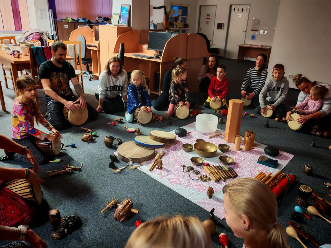Šamanské bubny, tibetské mísy, žáby, píšťaly, deštné sloupy, chrastítka - vše jsme si vyzkoušeli a společně zajamovali. Na závěr pár minut relaxace za doprovodu hry na handpan.