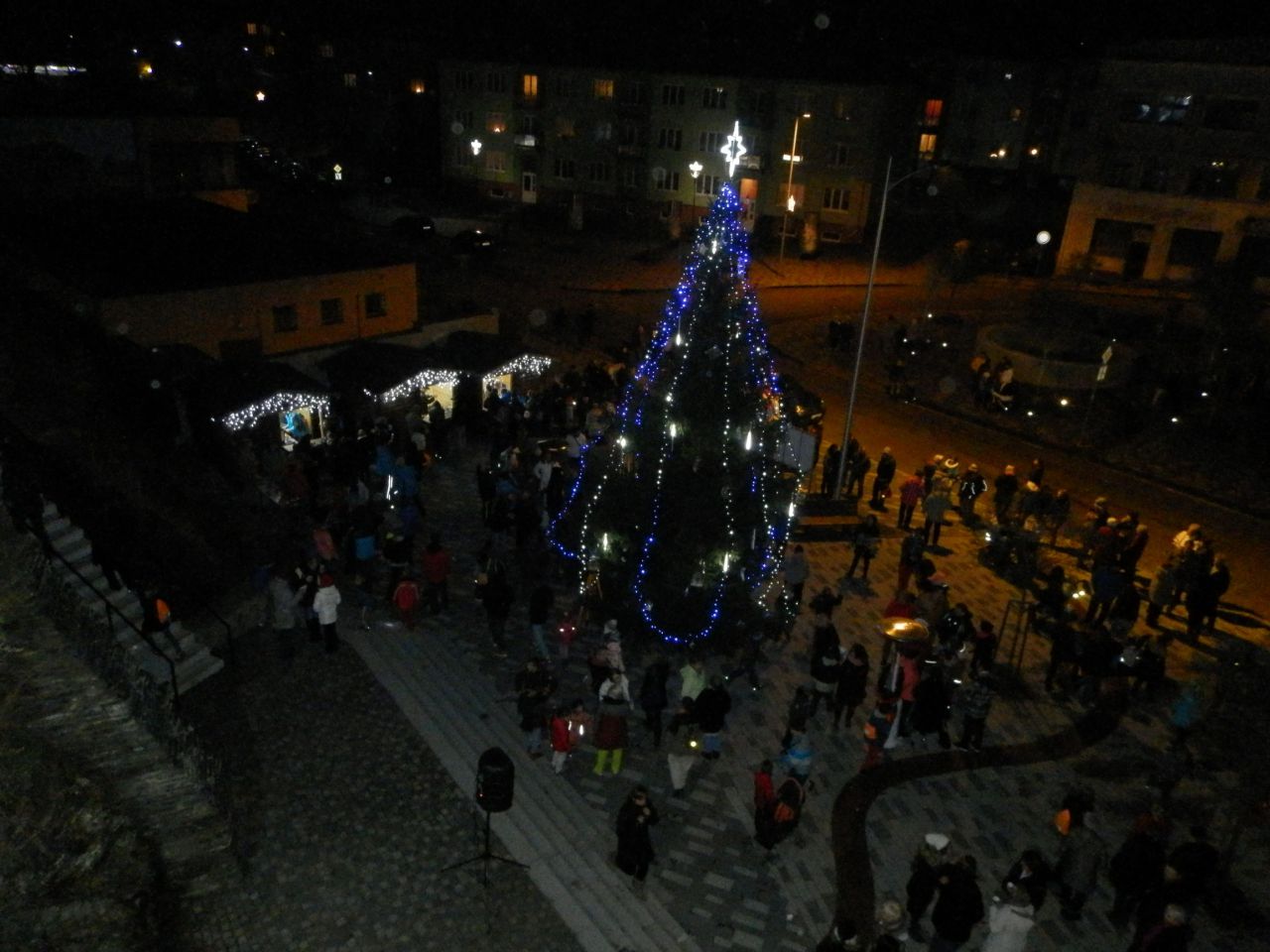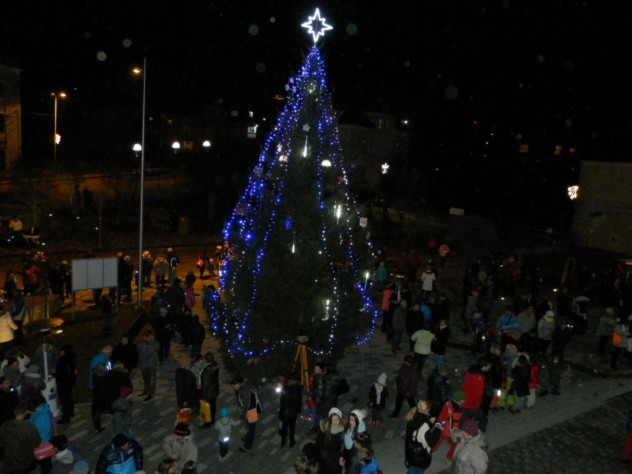 Letošní rozsvěcení vánočního stromečku na Masarykově náměstí. Akce byla financována Evropskou unii, Ziel 3, SN CZ, Euregio Egrensis a Městem Hranice.