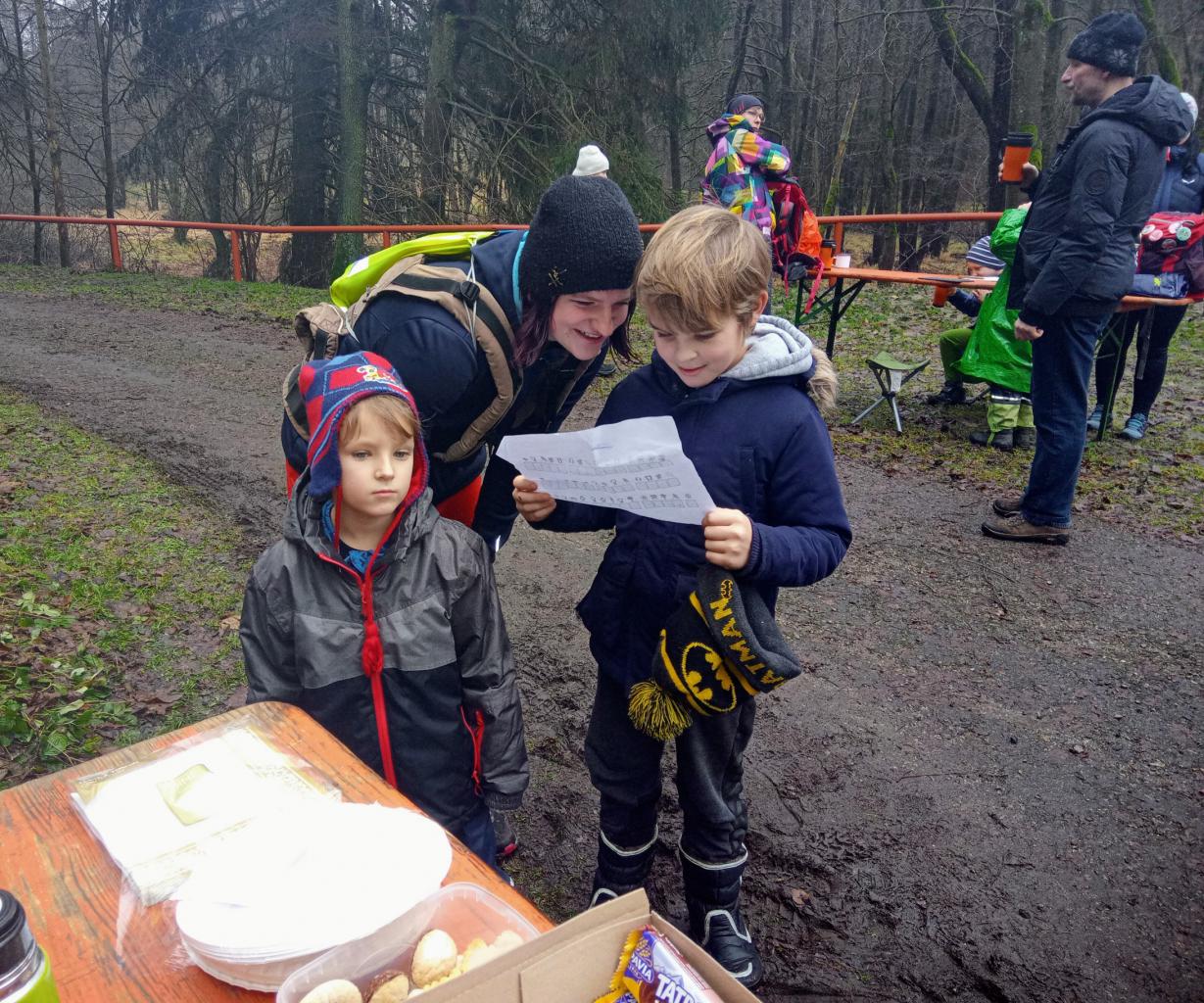 Setkání na Kaiserově hamru, cestou kvíz, odměny a opékání buřtů.