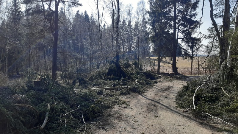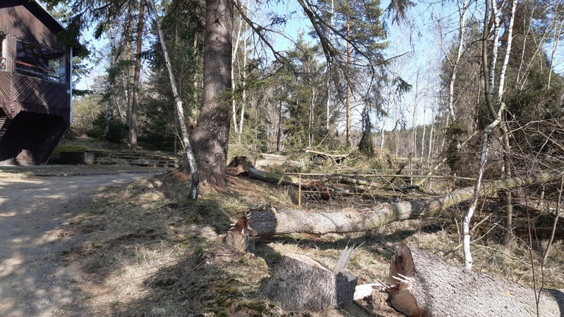 Pokácení nezdravých stromů na Trojmezí.