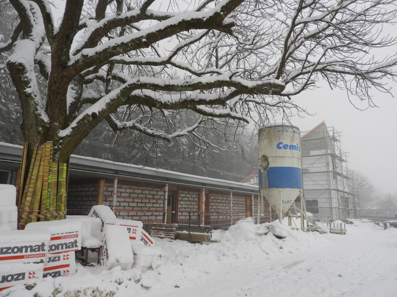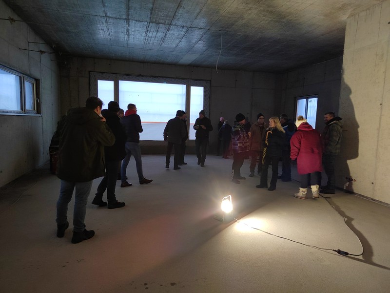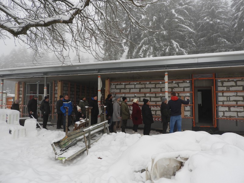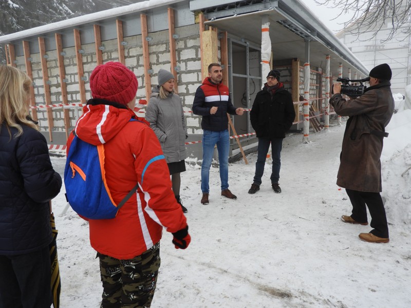 Komentovaná prohlídka stavby kabin a obecního domu ve Studánce za přítomnosti autora projektu Ing. P. Kostnera.